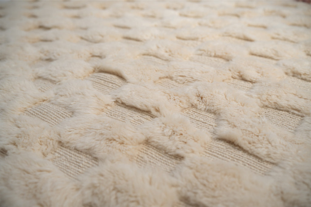 The name Djennah means 'The garden of paradise' in Arabic. The combination of the high pile squares with the low squares makes it a special rug. It is handmade in Beni M'rirt from 100% pure new wool and colored with natural raw materials.