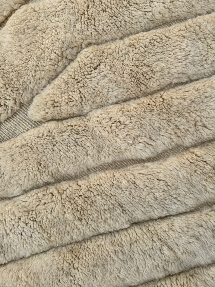 This rug exudes calmness and elegance with its subtle golden tones and clean lines. The rug is handmade in Beni M’rirt from 100% pure new wool and colored with natural raw materials.