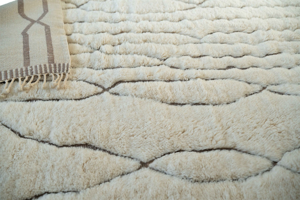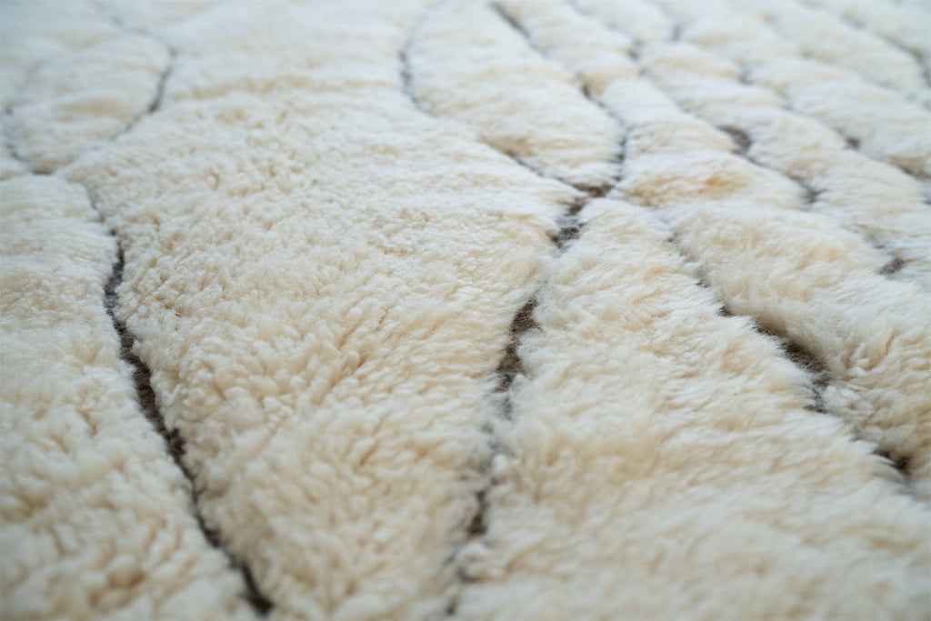 High-pile rug with low-woven wavy lines, inspired by rivers.
