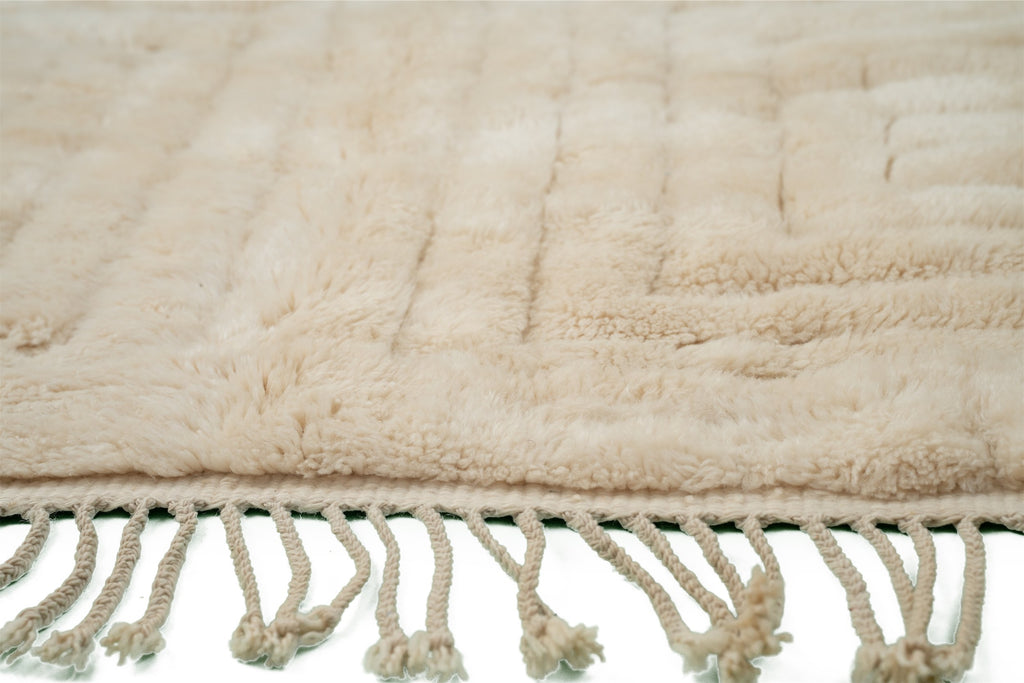 The Beauty Lines rug consists of a combination of flat woven lines and deep pile lines. Together they reflect the beauty of the rug. It is handmade in Beni M'rirt by hand made from 100% pure new wool and is not dyed.